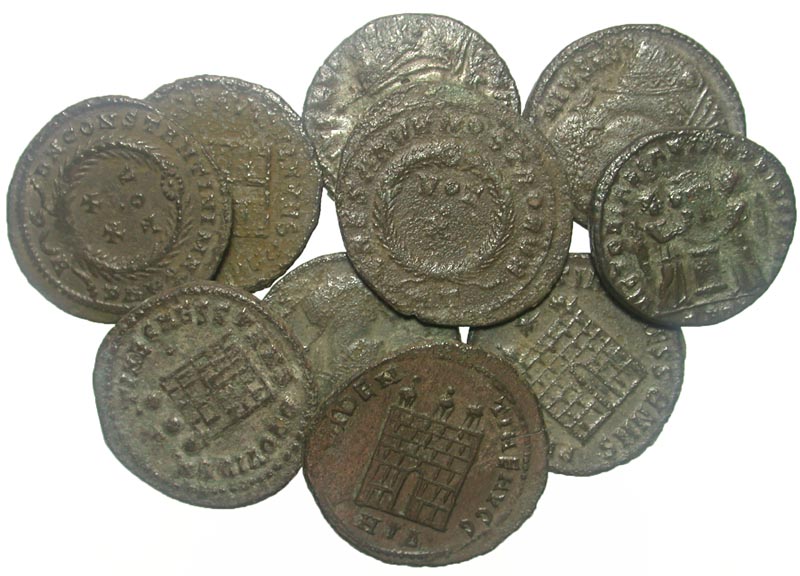 Lot of 10 Late Roman Bronze Coins. Licinius I and Constantinian family. Different mints, Fine-VF.