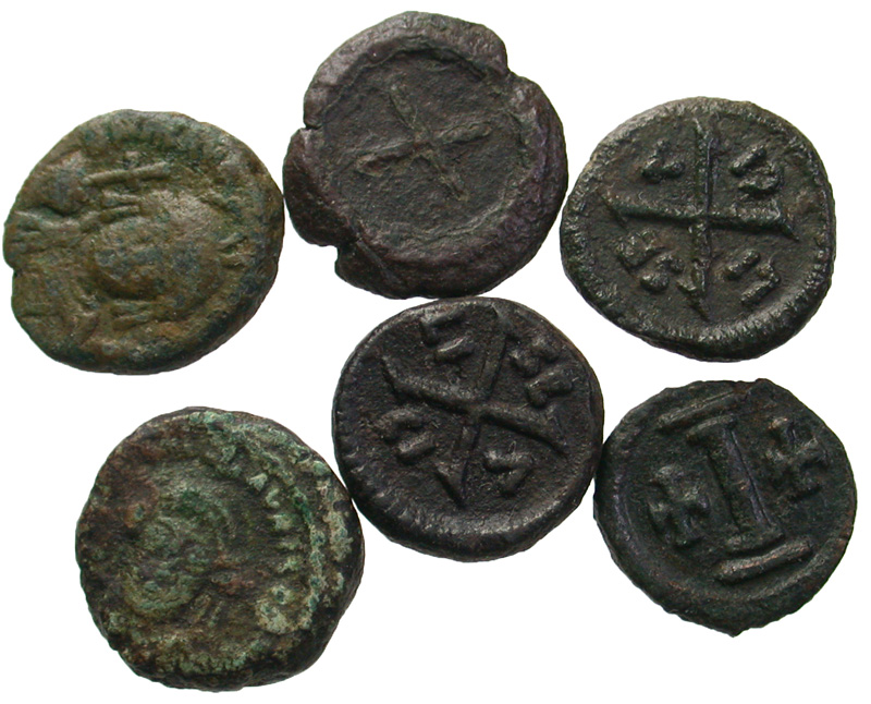 Lot 7-321. Lot of 6 Byzantine Decanummi, Maurice Tiberius.