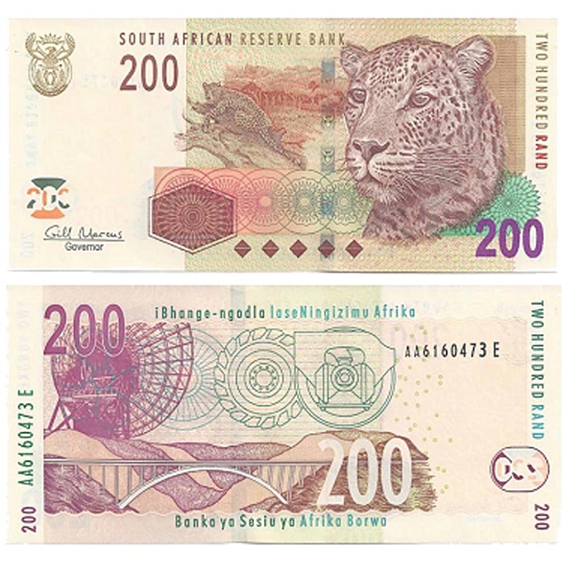 Lot 7-339. South Africa, 200 Rand, 2005. XF, crisp.