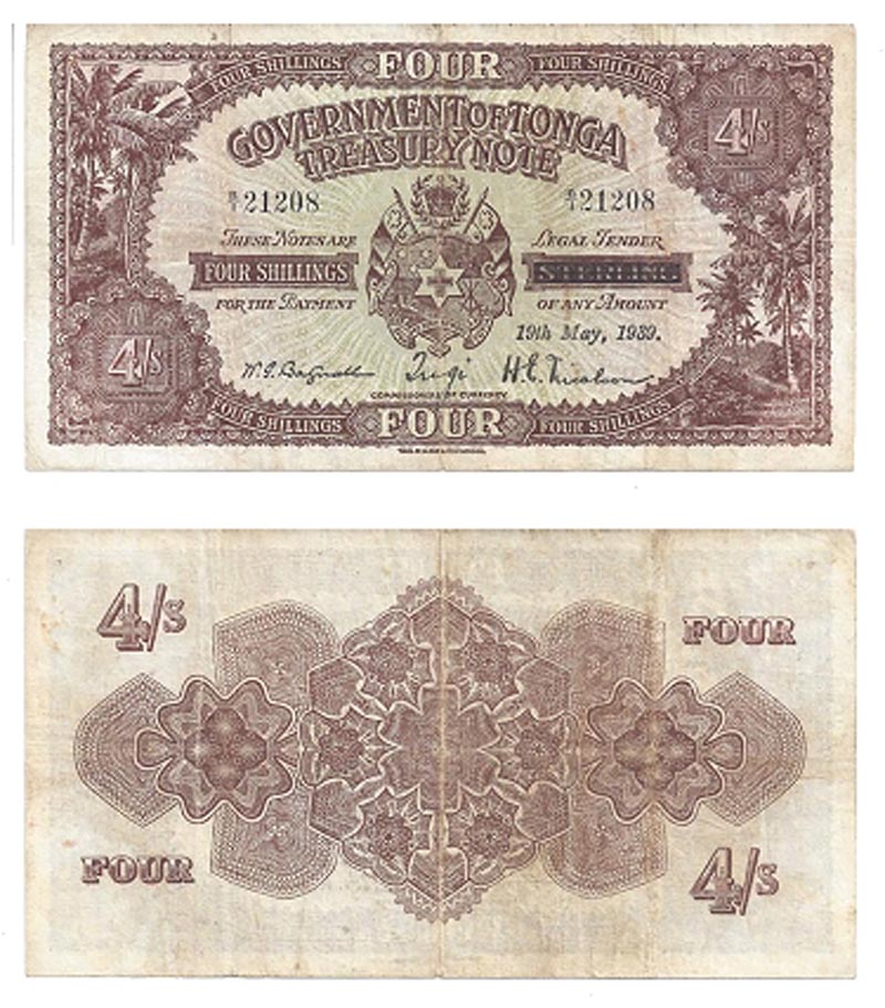 Lot 7-344. Tonga, 4 Shillings, 1939. VF.