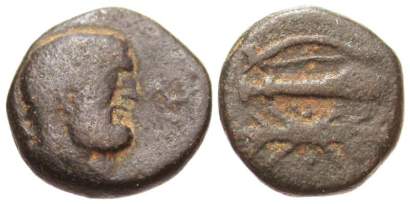 Pisidia, Selge. 2nd-1st Century B.C. Æ 12 (2.22 mm). Head of Herakles right, triskeles before / Winged thunderbolt, bow and club on either side. SNG BN 1997 var (no triskeles). aVF.