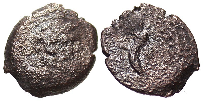 This essentially unpublished type fits into the range of late Ptolemaic Cypriot small bronzes. The obverse has the usual Zeus-Ammon with the reverse has ΠTOΛEMAIOY BAΣIΛEΩΣ around a single, not double cornucopia. While not listed in Svoronos, three worn examples were found at the Paphos II dig (1.48g and 1.98g) where they were assigned to the time of Ptolemy XII. The type is consistent with the second reign of Ptolemy IX to Ptolemy XII.