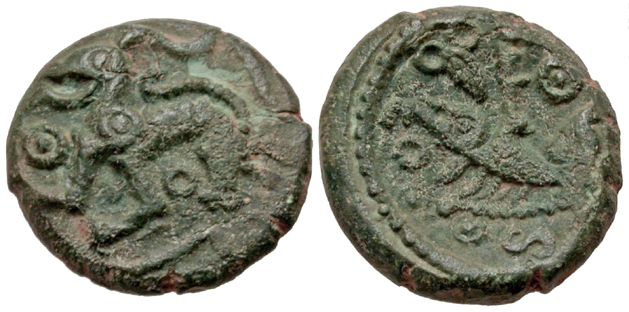 Lot 002. Northeast Gaul, Ambiani. Ca. 50 B.C. Potin unit. Scarce. Ex Agora Auctions, Ex CNG.