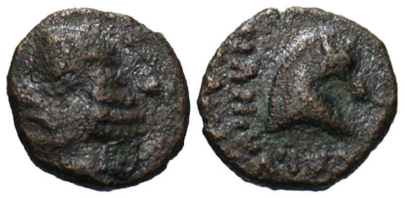 Parthian Kingdom. Orodes II. Ca. 57-38 B.C. Æ chalkus (9.9 mm, 0.95 g, 2 h). Ecbatana mint. Diademed head left / Horse's head right. Sellwood 47.40; Shore 521. Fine.