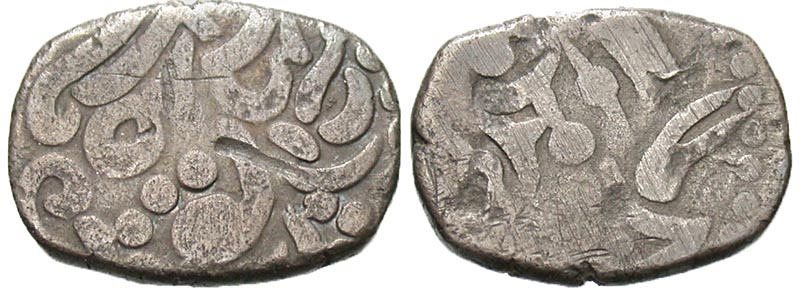 Palas of Bengal. Vigrahapala I and his successors. ca. 850-988. AR drachm (18.0 mm, 3.17 g). Indo-Sasanian style bust right / Stylized fire alter and attendant design with "Ma" in place of the alter shaft. MIWC 384-388. aVF. Early series.