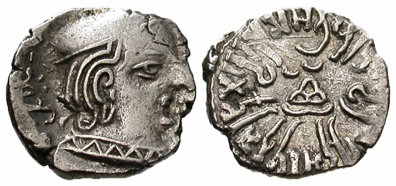 Lot 9-087. Western Kshatrapas. Bhartrdaman. as Mahakshatrapa, 201-217/279-295. AR drachm. 211 Saka. Scarce with full date.