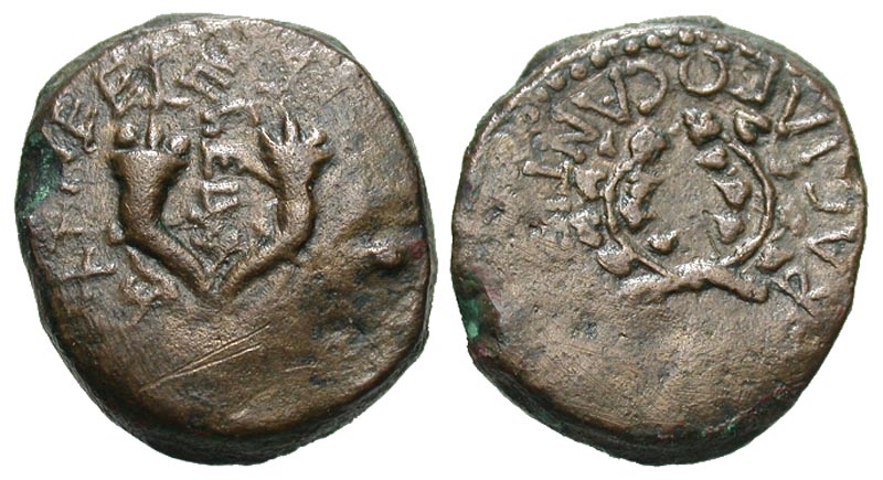Lot 9-090. Mattathias Antigonos. 40-37 B.C.E. Æ 8 prutot.