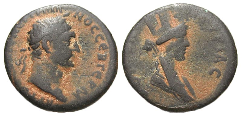 Koinon of Syria. Trajan. A.D. 98-117. Æ hexachalkon (3.85 g). AYTOKP KAIC NEP TPAINOC CEB ΓEPM, laureate head right / KOINON CYPIAC, turreted and draped bust of Tyche right. McAlee 500; BMC 1. aVF, Scarce.