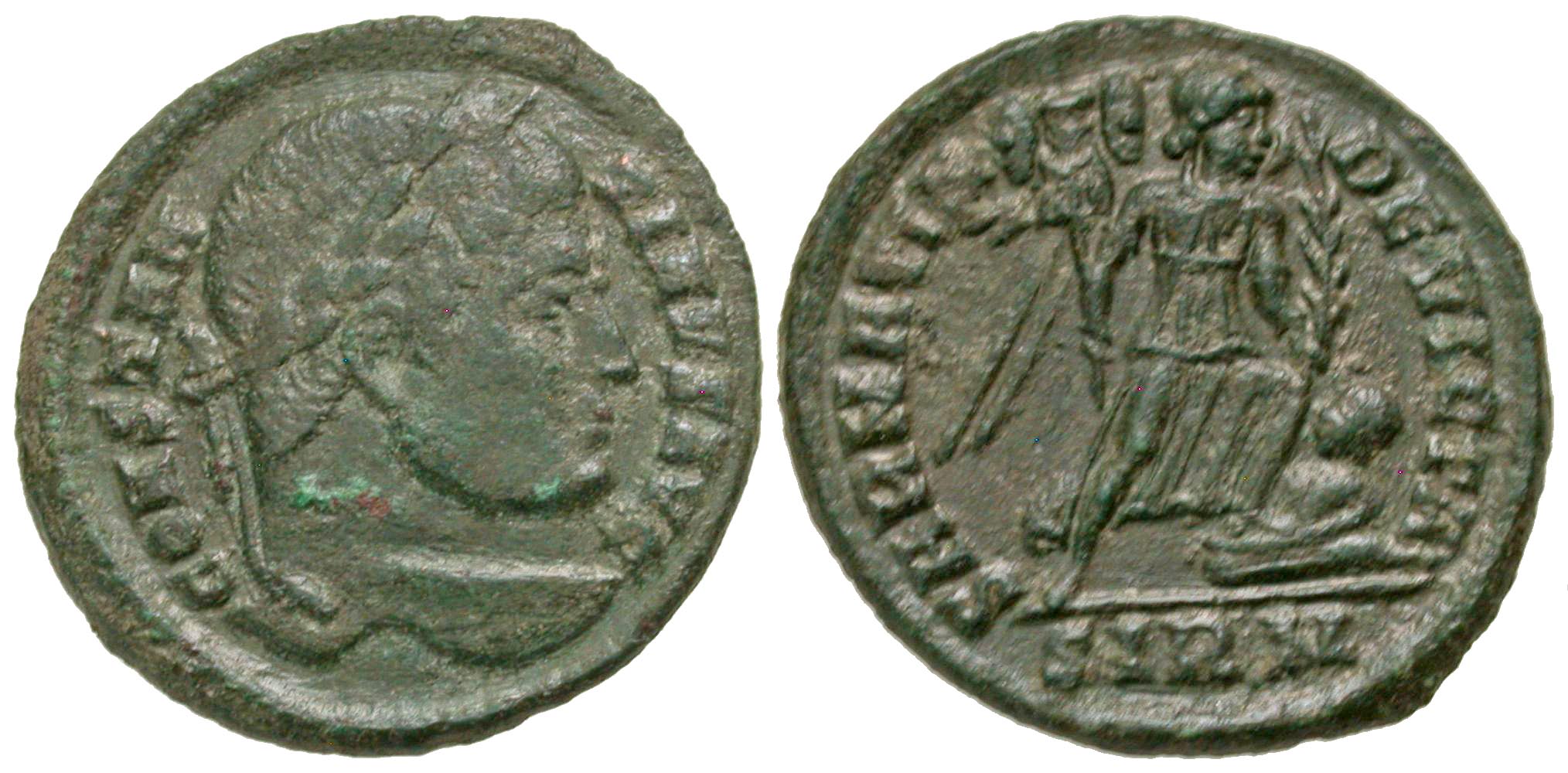 Lot 617. Constantine I. A.D. 307/10-337. AE follis. Sirmium mint, struck A.D. 324-325.