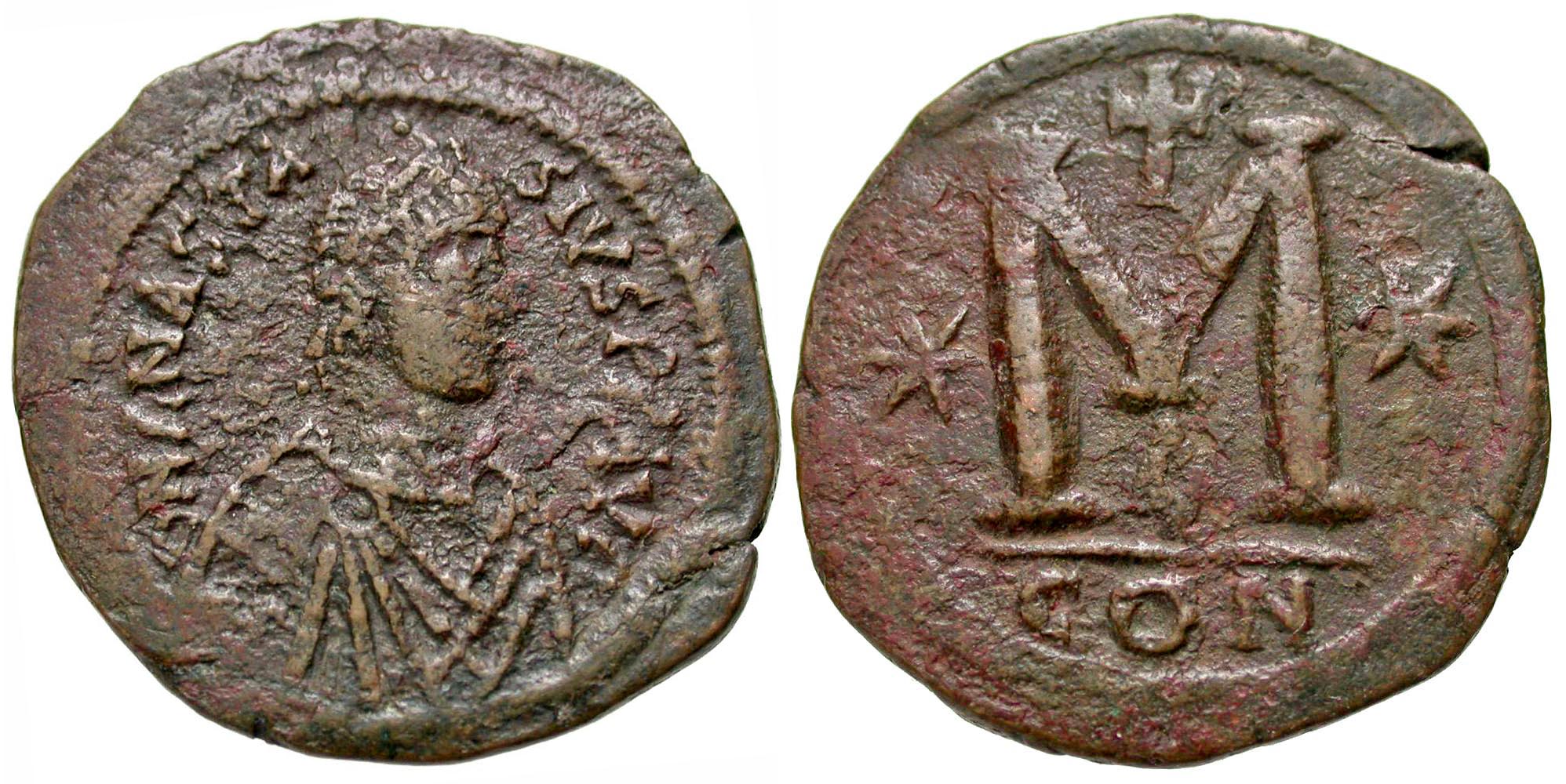 Lot 700. Anastasius I. 491-518. AE follis. Constantinople mint, struck 498-518.