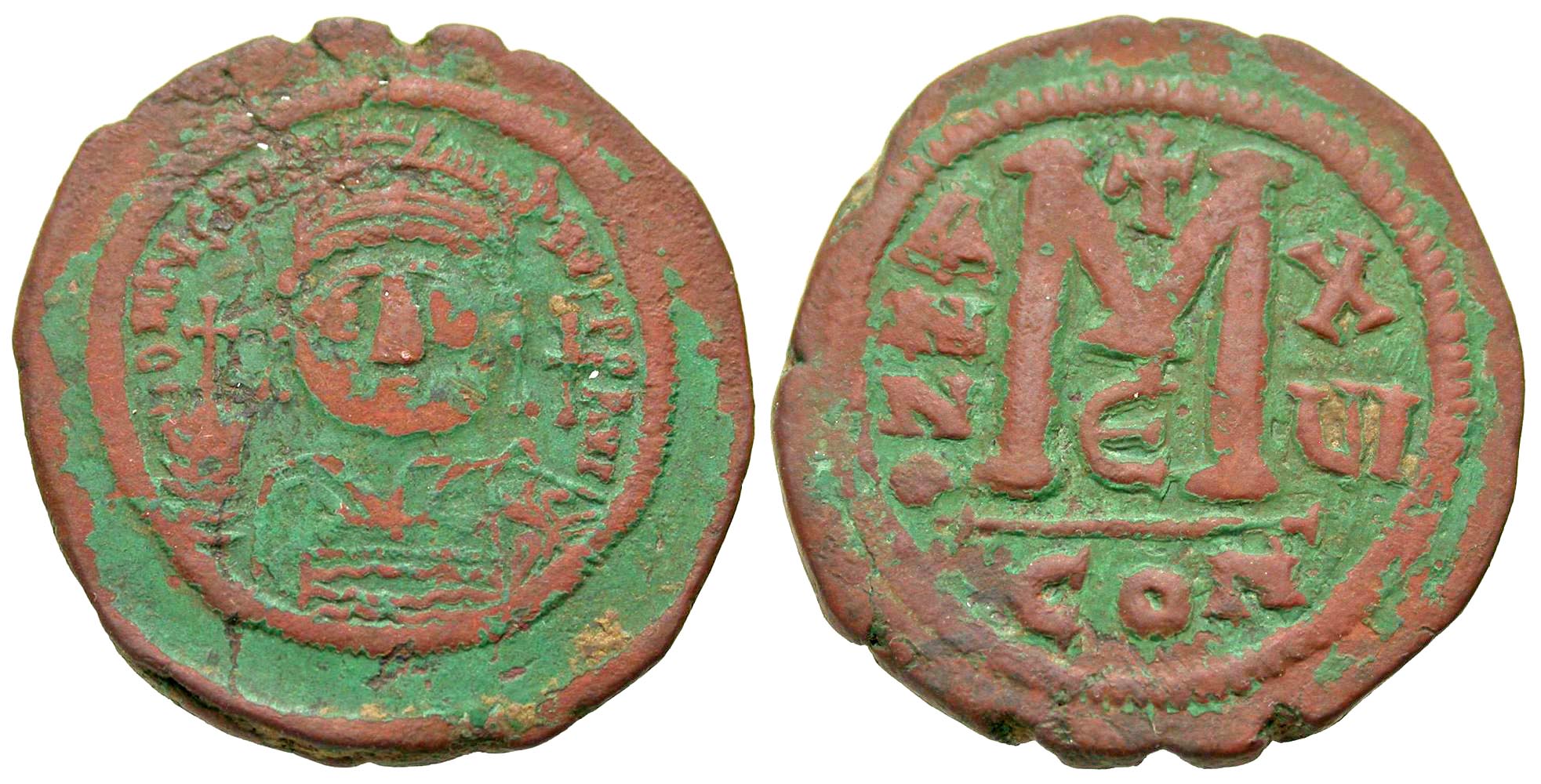 Lot 707. Justinian I. 527-565. AE follis. Constantinople mint, dated RY 16 = 542/3.
