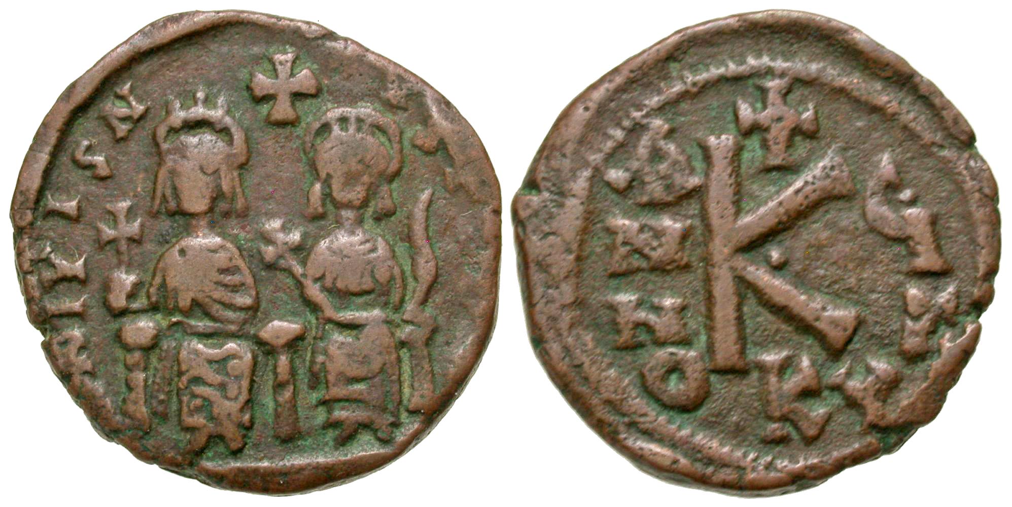 Lot 715. Justin II. 565-578. AE half follis. Cyzicus mint, dated RY 6 = 570/1. Rare.