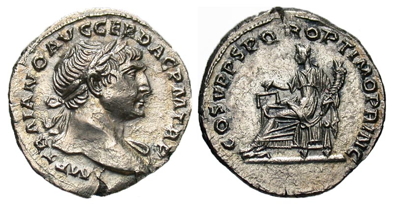 Lot 9-141. Trajan. A.D. 98-117. AR denarius. Rome mint, A.D. 107-111.