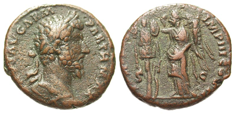 Lot 9-149. Lucius Verus. A.D. 161-169. Æ as. Rome mint, A.D. 165-166. Rare.