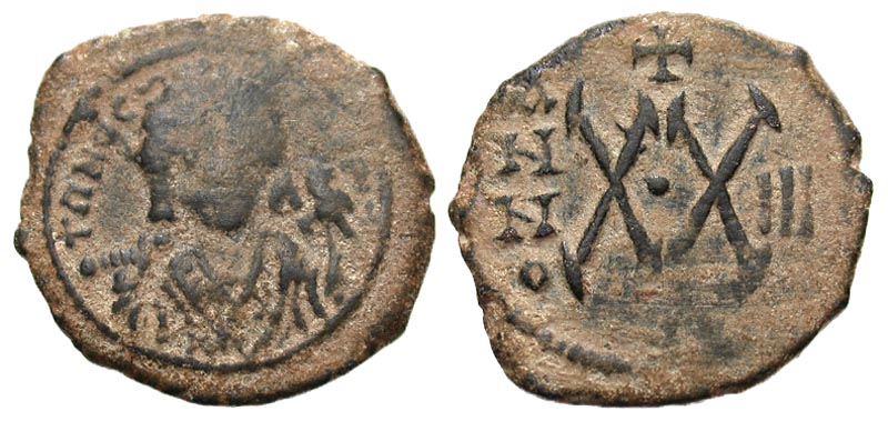 Lot 9-205. Maurice Tiberius. 582-602. Æ half follis. Antioch mint, Year 3 = 584/5.