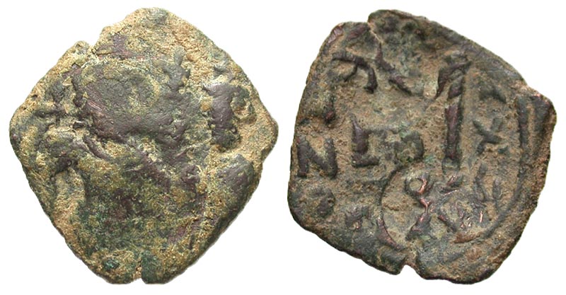 Lot 9-206. Heraclius. 610-641. Æ Follis. Constantinople, Dated year 26=A.D. 635-6. Scarce.