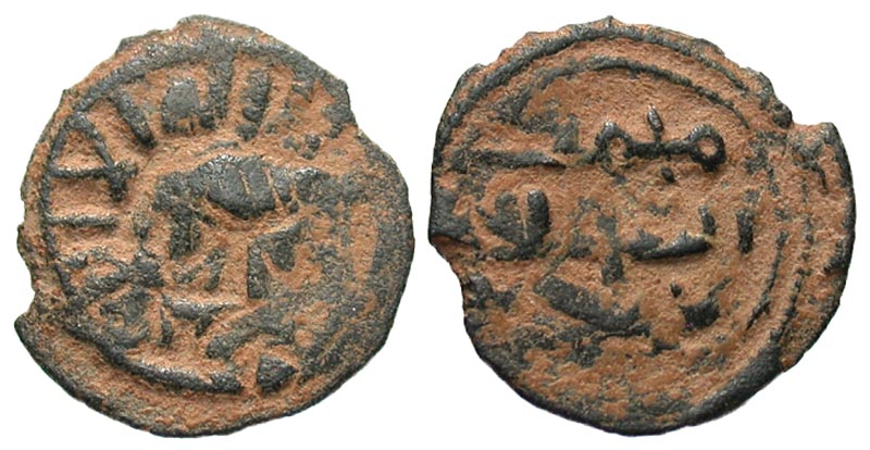 Lot 9-225. Umayyad Caliphate. Anonymous. 75-85/698-705. Æ fals. Homs mint.