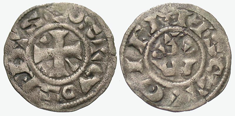 Lot 9-243. France, Provincial. Gien (County of Donzy). Geoffrey II. 1120-1180. AR denier. Angers mint.