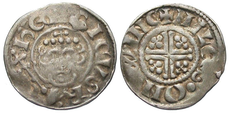 Lot 9-257. England, Plantagenet Kings. John. As King, 1199-1216. AR penny. Winchester mint, class 5b 2; 1205-1207. Miles, moneyer. Ex Alan Miles collection; Ex J.P. Mass collection. Pt. 1, DNW 61, 17 Mar 2004 lot 1631 (bought 1989).