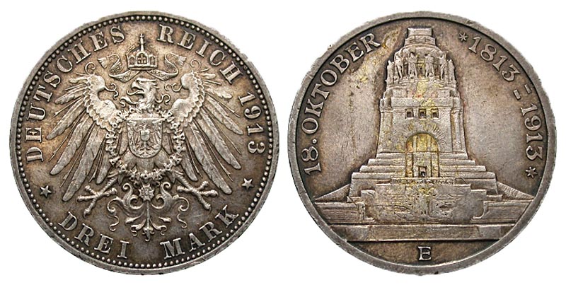 This coin commemorates the battle of Leipzig, 100 years earlier.