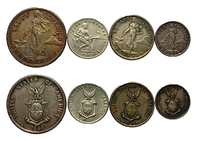 Lot of 4 Philippine Coins. As US protectorate; 5, 10, 20, and 25 centavos, dated 1941-44. F-VF condition, toned.