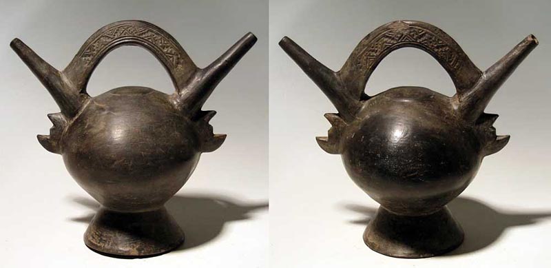 Lot 9-344. A fine Lambayeque (Sican) double-spout vessel from Peru, ca. 700 - 1300 AD.
