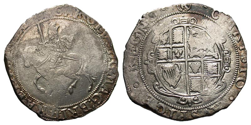 Lot 10-189. British, House of Stuart. Charles I. 1625-1649. AR 1/2 crown. London mint; mm: R in circle, ND.