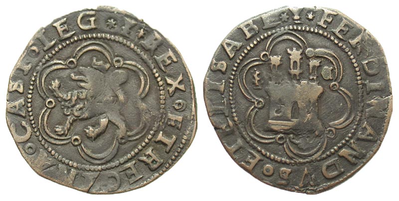 Lot 10-195. Spain, Castile & León. Fernando V & Isabel I (Los Reyes Catolicos). 1474-1504. Æ octavo. Cuenca mint.