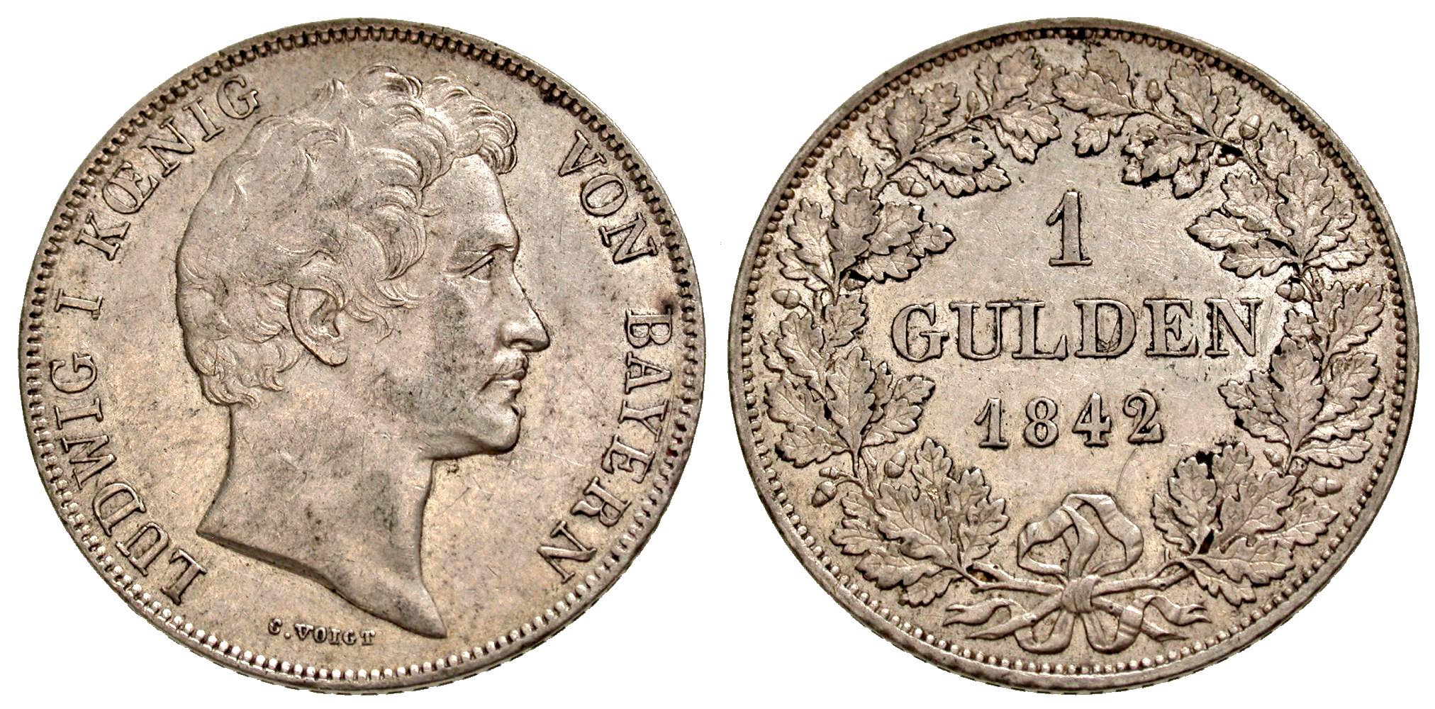 Lot 301. Germany, Bayern. Ludwig I. 1825-1848. Gulden. München mint, 1842. Ex Numismatik Naumann auction 57, lot 908.