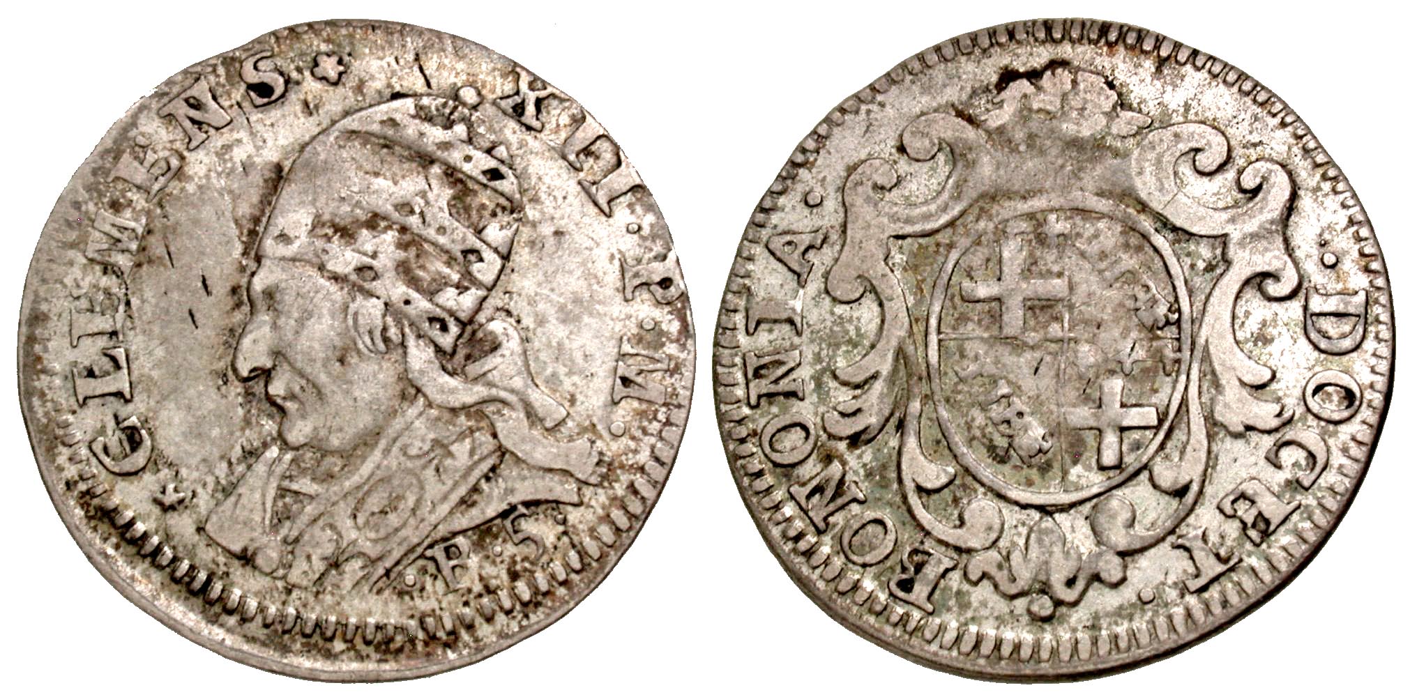 Lot 491. Papal States, Bologna. Clemente XII. 1730-1740. AR 5 bolognini. Rare.