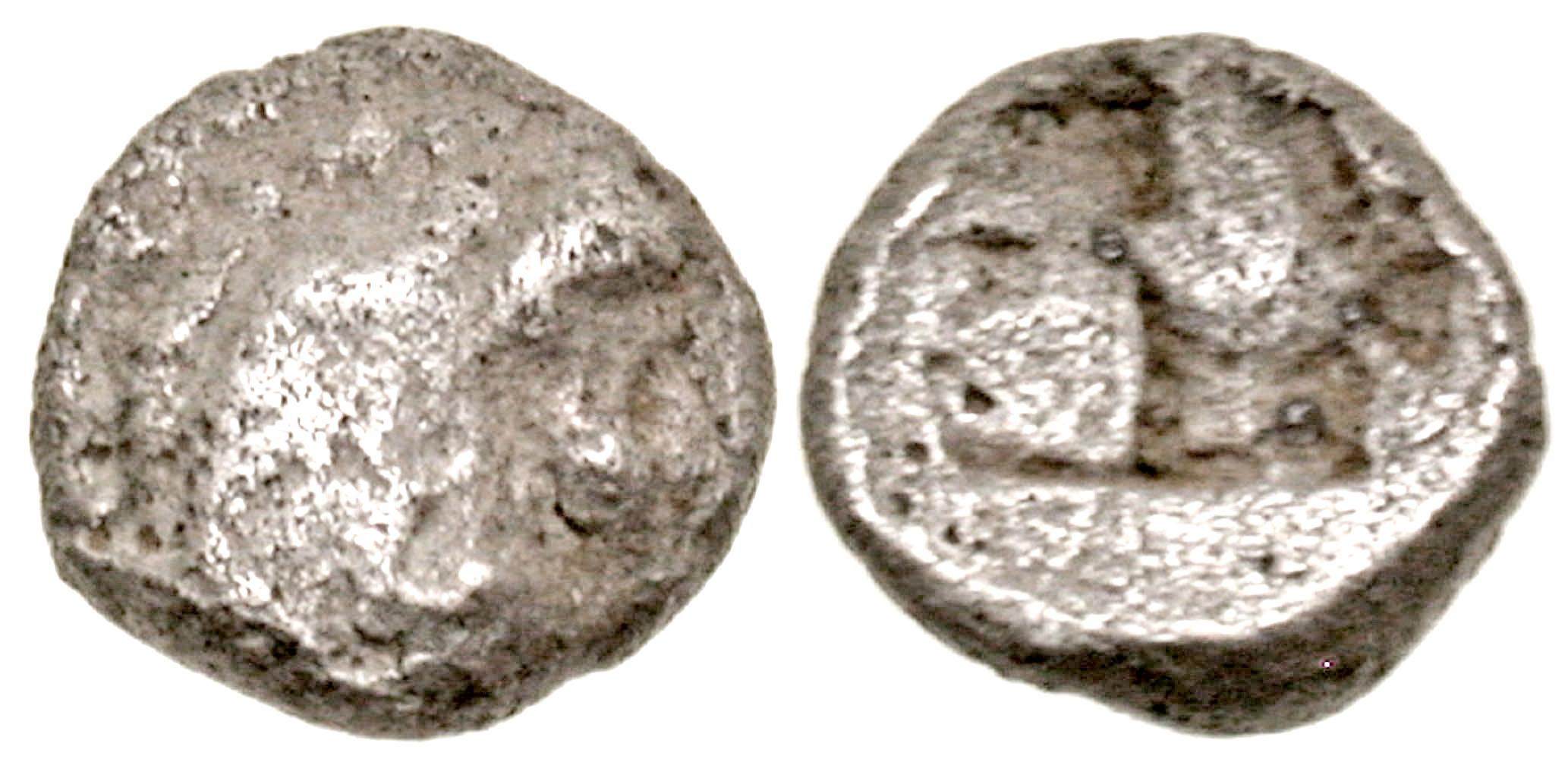 Bidding Details - Lot 012, Macedon, Mende. Ca. 480-460 B.C. AR tritetartemorion. Rare.