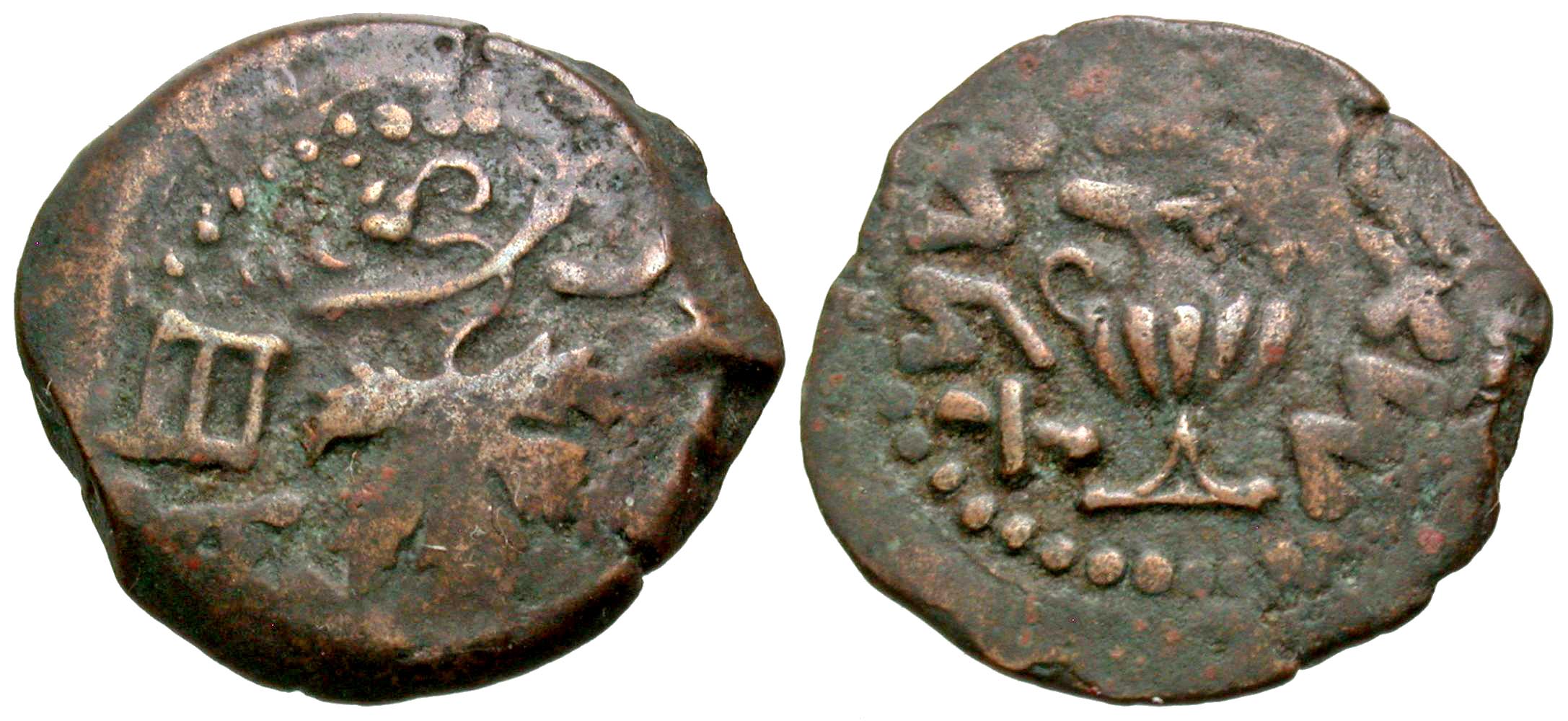 Lot 074. Judaea. First Jewish War. 66-70 C.E. AE prutah. Dated year 2 = 67/8 C.E..