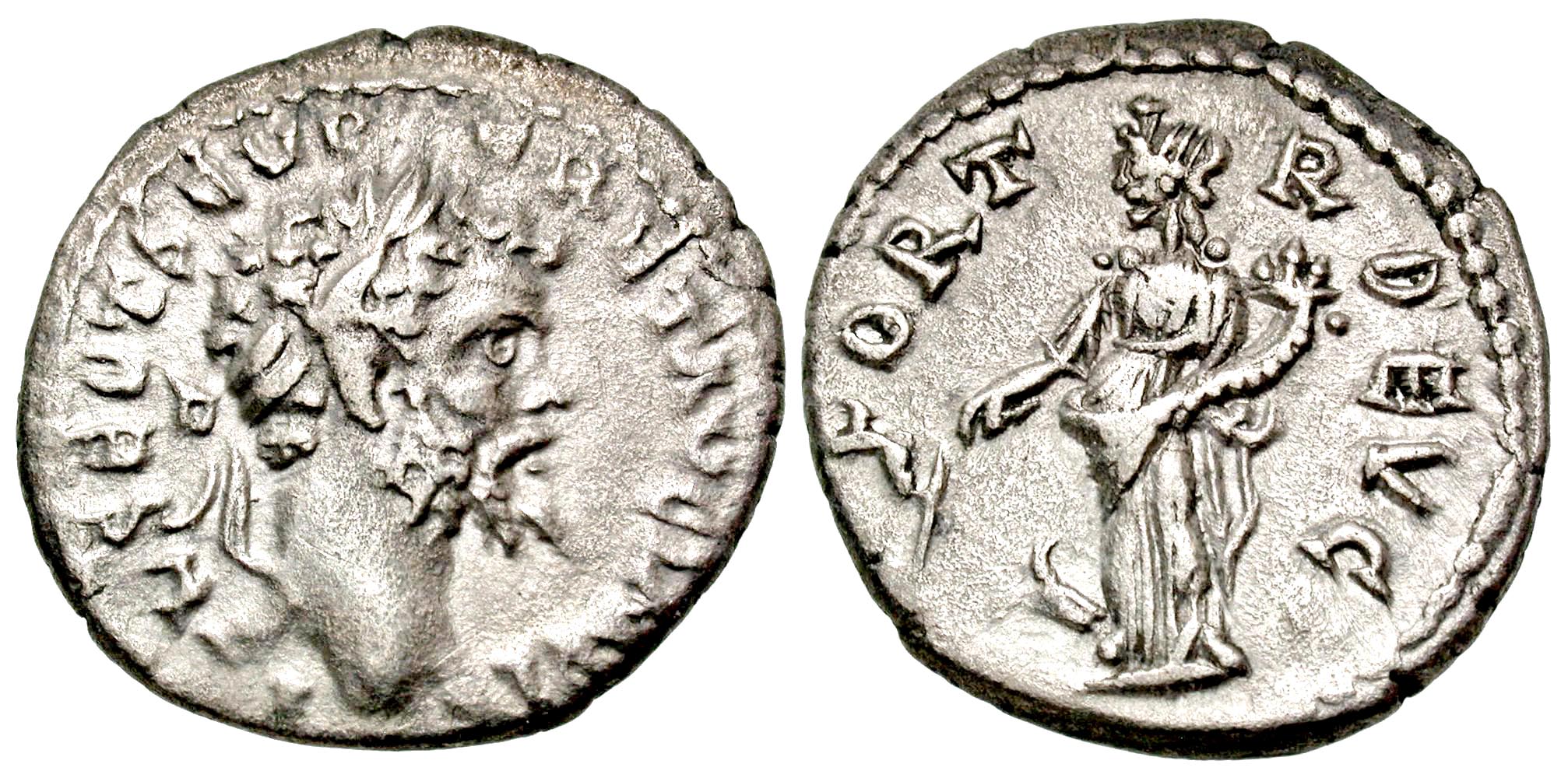 Septimius Severus. A.D. 193-211. AR denarius (19.4 mm, 2.99 g, 1 h). Laodicea ad Mare mint, struck A.D. 193. L SEPT SEV PERET AVG IMP I, laureate head of Septimius Severus right / FORT RDEVC, Fortuna standing left, wearing polos, holding rudder and cornucopia. RIC 451 var. (IMP II, Fortuna seated); RSC 168 var. (same); BMCRE p. 108 *. VF. Very Rare, unpublished.