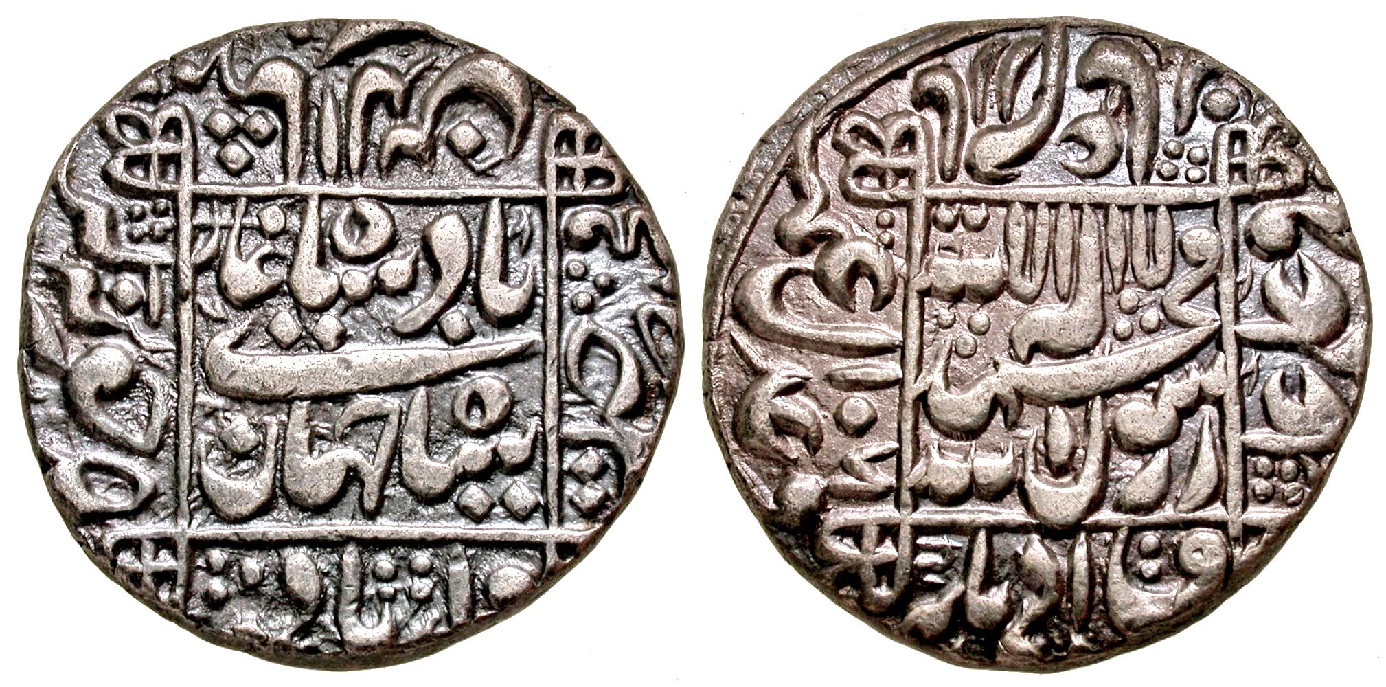 Lot 233. Mughal Dynasty. Shah Jahan. AH1037-1068, 1628-1658 AD. AR Rupee. Junagarh mint, AH1071 (posthumous issue). Extremely Rare.