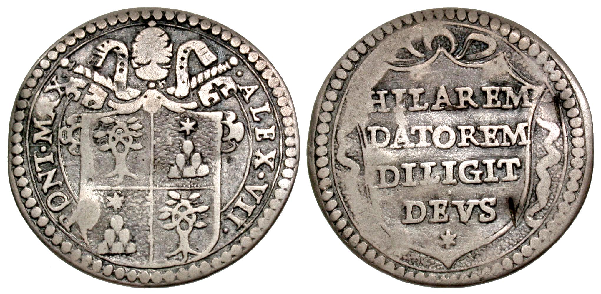 Lot 299. Papal States, Roma. Alexander VII. 1655-1667. AR grosso. Scarce with this type of arms.