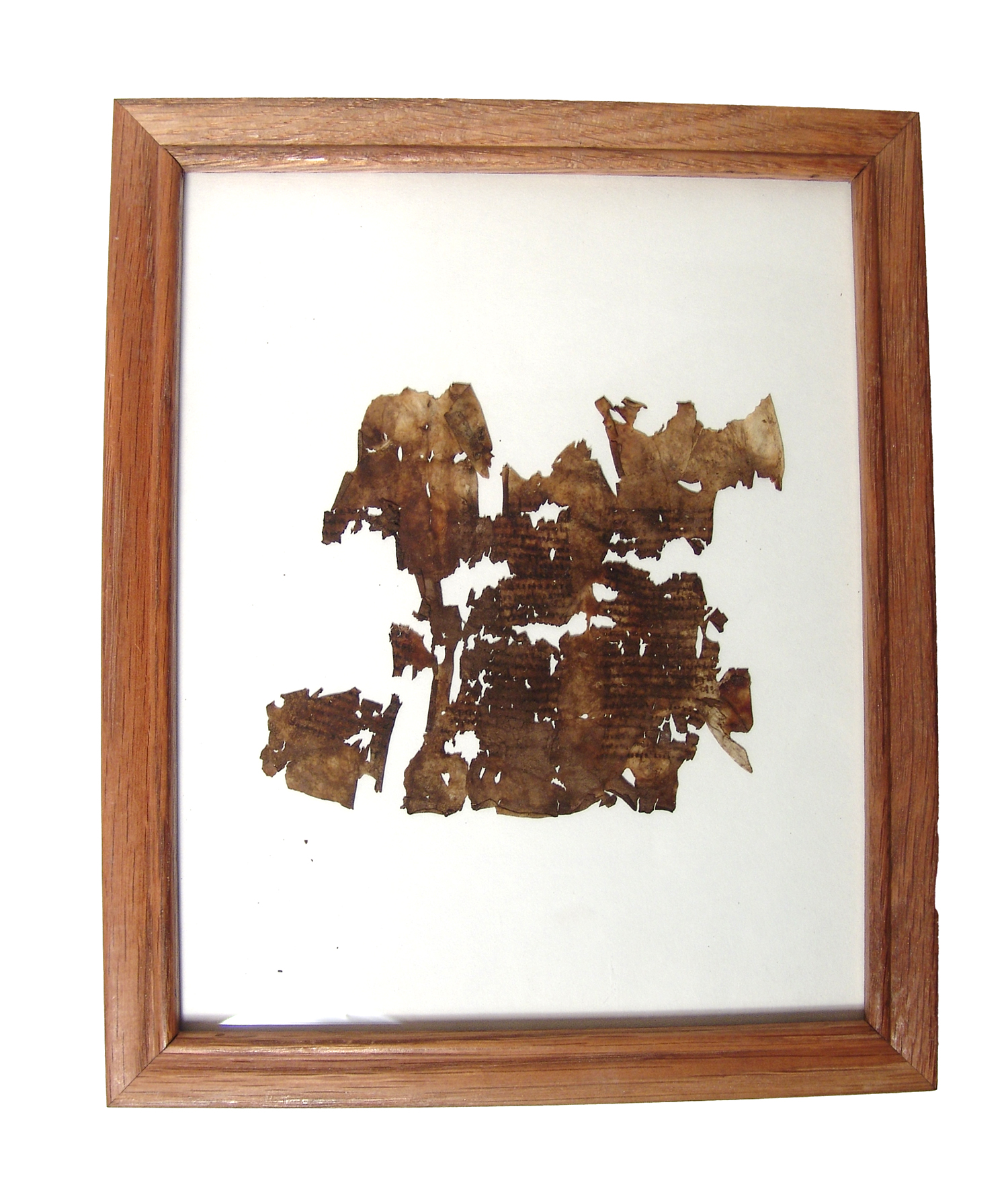A fragmentary vellum page from a Coptic manuscript, ca. 9th-12th Century A.D. , with neatly penned script. From a religious book. Frame measures 11 ? x 9 1/8 in. (28.5 x 23.2 cm).Ex Rilling collection.Estimated Retail Value: $250-350.