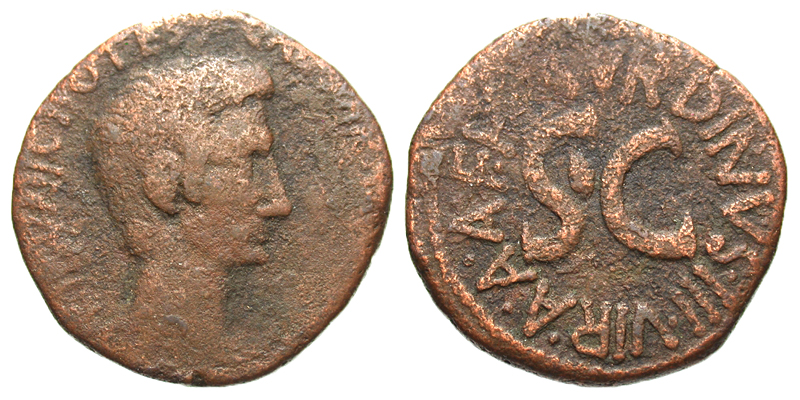 Lot 12-086. Augustus. 27 B.C.-A.D. 14 Æ as. Rome mint, 15 B.C. L Naevius Surdinus, moneyer.