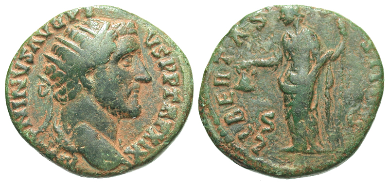 Lot 12-095. Antoninus Pius. A.D. 138-161. Æ dupondius. Rome mint, A.D. 156-157.