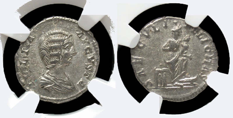 Lot 12-104. Julia Domna. Augusta, A.D. 193-217. AR denarius. Rome mint, A.D. 200-207.