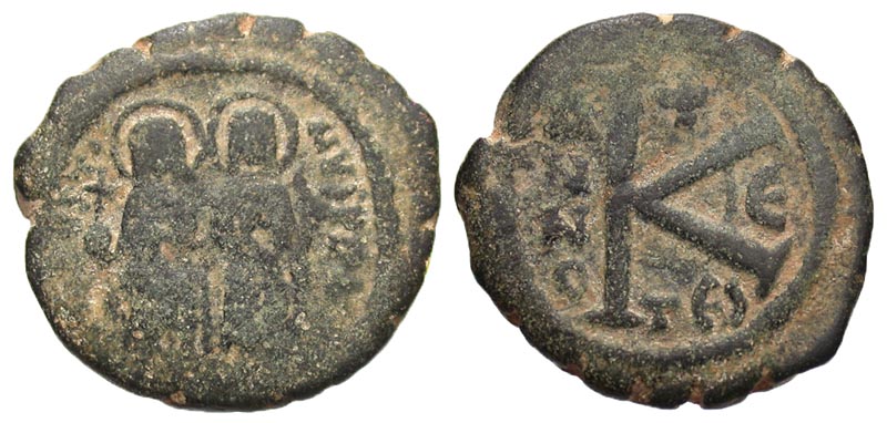 Lot 12-170. Justin II. 565-578. Æ half follis. Thessalonica mint, 569/570.