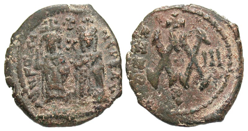 Lot 12-173. Phocas. 602-610. Æ half follis. Antioch mint, Year 3 = 604/605.