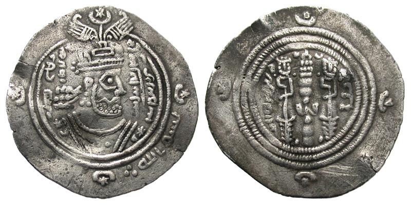 Lot 12-177. Arab-Sasanian. 'Ubayd Allah b. Ziyad. 54-64/673-683. AR drachm. Sijistan, AH 56.