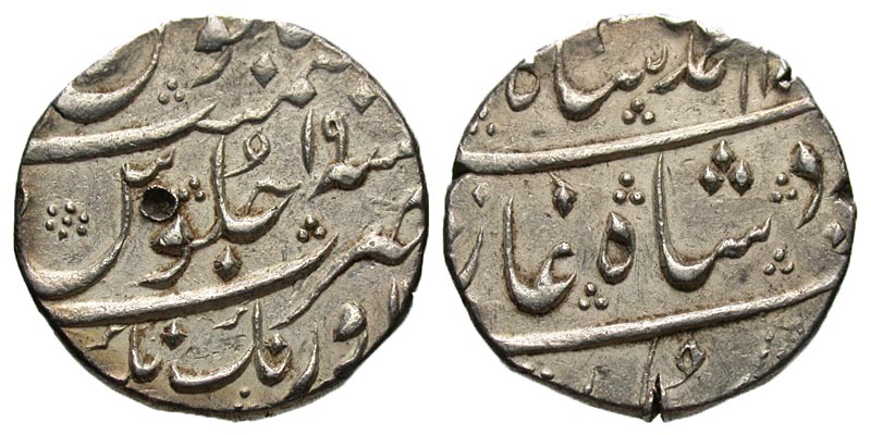 Lot 12-190. INDIA, Mughal Empire. Nasir al-Din Muhammad Shah. 1131-1161 / 1719-1748. AR rupee. Aurangnagar mint, year 19.