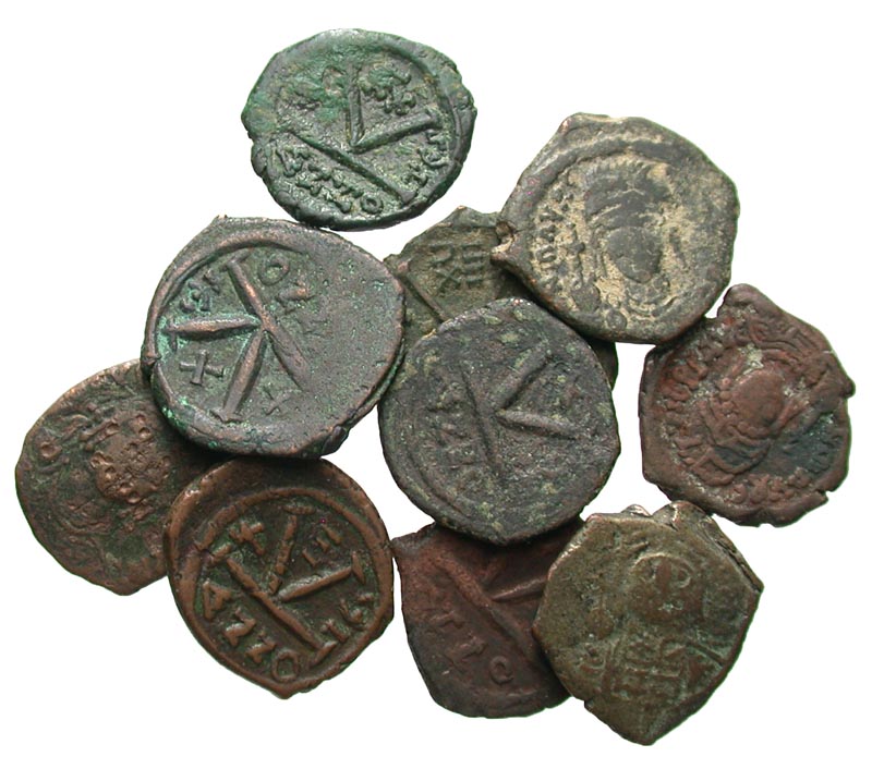 Lot of 10 Half Folles of Maurice Tiberius. Lot of 10 Half Folles of Maurice Tiberius, Thessalonica mint. Average grade: Fair-Fine.