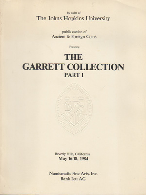 The Garrett Collection Part I. Numismatic Fine Arts, Inc., May 16-18, 198. The Garrett Collection Part I. Numismatic Fine Arts, Inc., May 16-18, 1984, Beverly Hills, California. Ancient Roman and other world coins. 402pp. Fine, clean copy including estimates. Excellent photography with many enlargements.All books will be shipped directly from the consignor. We will invoice you with updated shipping charges shortly after the auction closes.