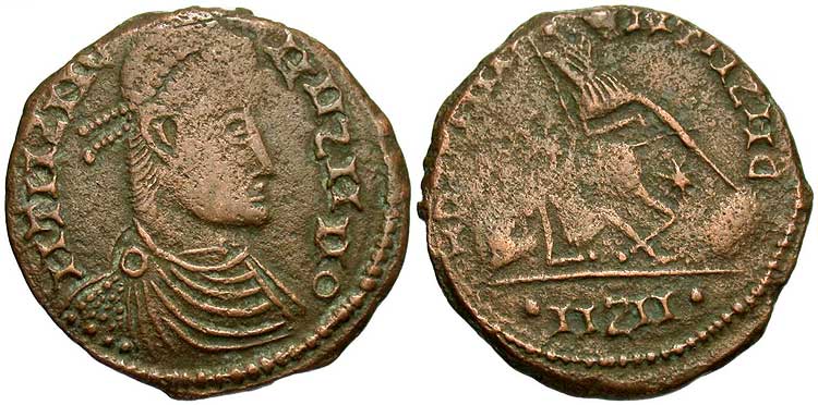 Highly stylized contemporary copy of Constantius II FEL TEMP REPARATIO fallen horseman Majorina