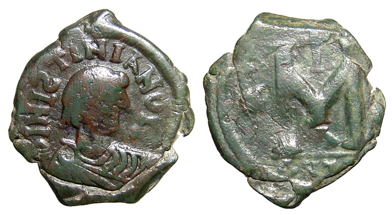 Lot 14-147. Justinian I - Thracian Imitative Issue. AD 527-565. AE Follis. A very unusual and attractive example copying an issue from Antioch!.