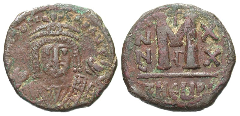 Lot 14-149. Maurice Tiberius. 582-602. Æ Follis. Antioch, Year 20=A.D. 601-2.