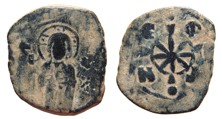 Nicephorus III Botaniates. AD 1078-1081. AE Follis (26 mm, 7.65 g, 6 h). Three-quarter figure of Christ standing facing / Cross with eight-pointed star at center, C-Φ-N-Δ in the angles. SBCV 1888; DOC 9; Sommer 56.