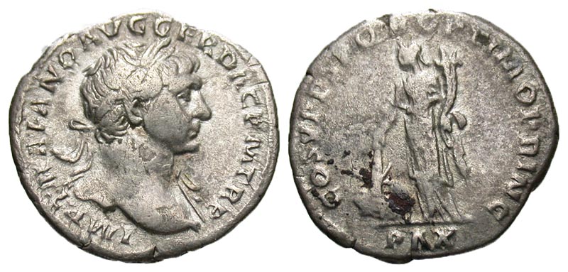 Lot 15-141. Trajan. A.D. 98-117. AR denarius. Rome mint, A.D. 98-99.